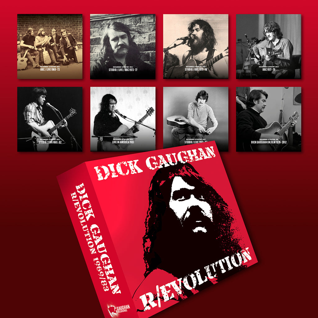In March–April 2025, a Kickstarter crowdfunding campaign ran with the twin goals of: (1) creating the 7CD+DVD box set R/evolution: 1969–83; (2) raising some funds for Dick Gaughan himself, retired and visually impaired. With active and generous endorsement from fellow artists including Barbara Dickson, Karine Polwart, Billy Bragg, Patsy Seddon, Chris Brain and Andrew Cronshaw, the campaign was an unmitigated success.